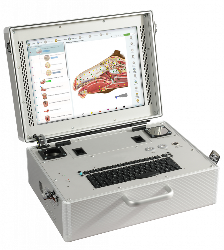 Die All-in-One Ausführung von METAVITAL HORSE VET vereint Rechner, Display und Wavedetektor-Anschluss in einem robusten Komplettgerät.