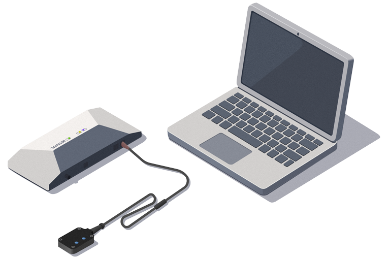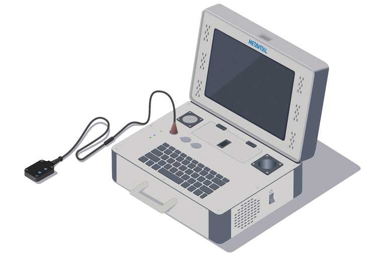 Die klassische Ausführung von METAVITAL HORSE VET kombiniert Notebook, Geräteeinheit und Wavedetektor zu einer flexiblen, modularen Lösung.